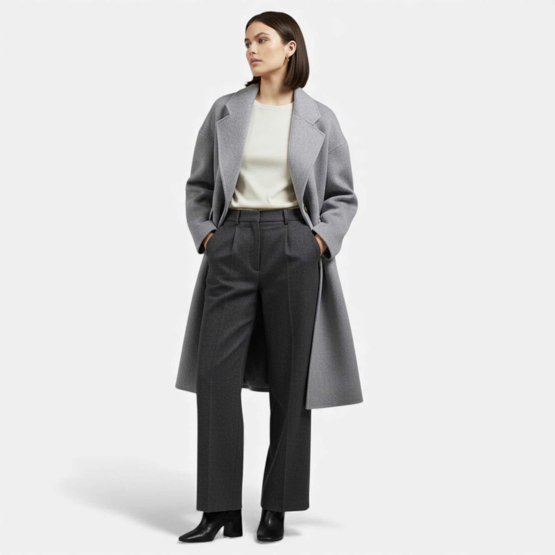 Dámský zimní kabát s dvojitými kapsami z vlněné směsi